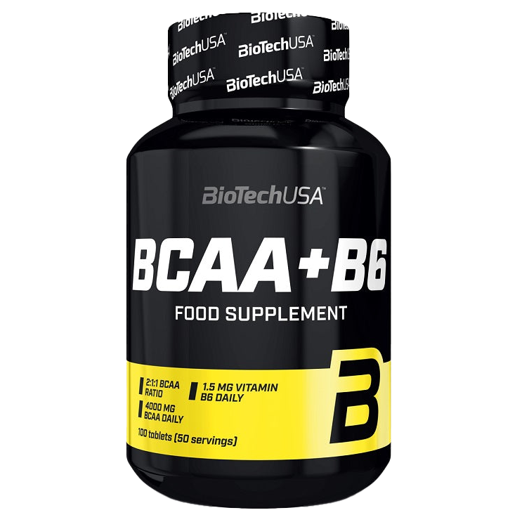BioTechUSABCAA + B6 - 100 tabletsFood supplement in tablet form, containing amino acids and vitamin B6Nutrition FactsServing Size: 4 tabletsServings Per Container: 50