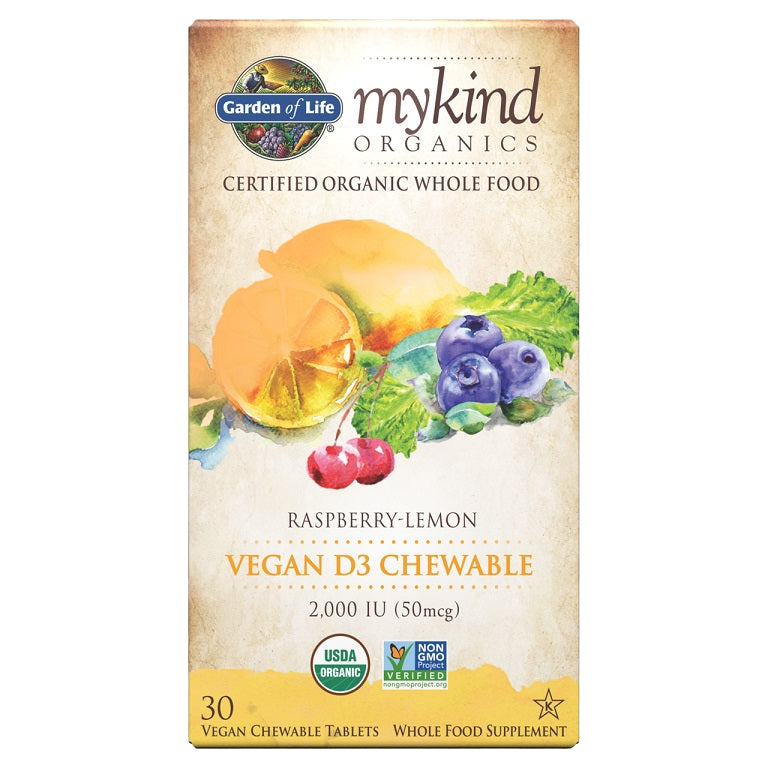 Garden of Life Mykind Organics Vegan D3 Chewable, 2000 IU (Raspberry-Lemon) - 30 vegan chewable tabs